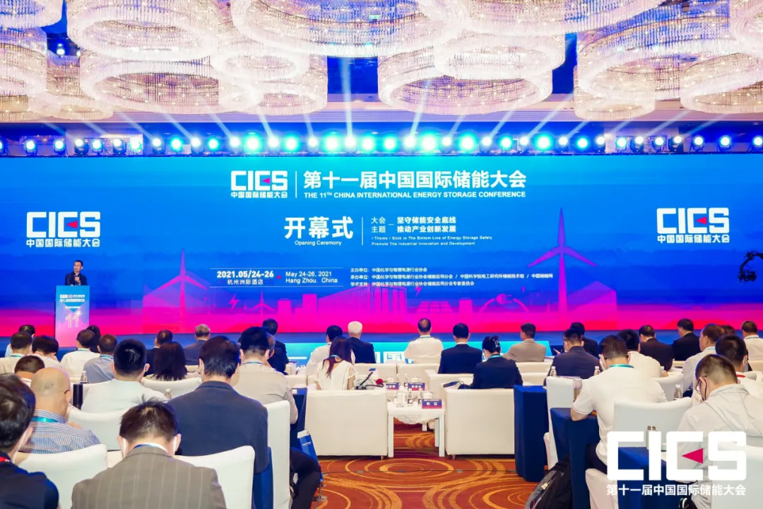 2021年5月24日-26日,第十一届中国国际储能大会在杭州召开。此次大会主题是“坚守储能安全底线,推动产业创新发展”,来自行业主管机构、国内外驻华机构、科研单位、电网企业、发电企业、系统集成商、金融机构等不同领域的718家产业链企业参加了本届大会。华体网页版登录入口_华体(中国)科技总裁佘朋鲋,副总裁兼能源事业部总经理蒋青山,研究院副院长桂勇华,能源事业部新能源业务部总经理杨朔等参加会议。会议现场本次大会开幕式由中国科学院电工研究所研究员陈永翀教授主持。国家能源局能源节约和科技装备司能效与储能处处长徐梓铭,中国工业节能与清洁生产协会副会长兼新能源电池回收利用专业委员会主任、原工信部节能与综合利用司一级巡视员李力,工业和信息化部节能与综合利用司节能处罗晓丽,中国化学与物理电源行业协会秘书长刘彦龙,国家能源局原副局长张玉清等领导出席大会并致辞。