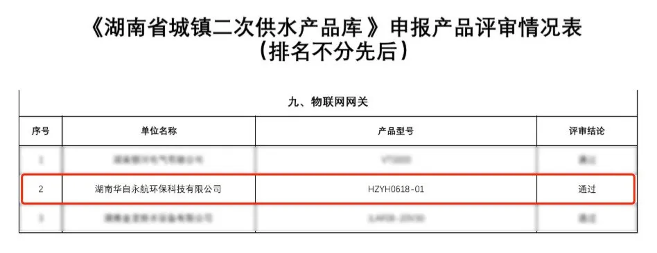 日前,华体网页版登录入口_华体(中国)科技子公司湖南华体网页版登录入口_华体(中国)永航环保科技有限公司(以下简称“华体网页版登录入口_华体(中国)永航”)二次供水物联网网关产品通过公示期,正式成为《湖南省城镇二次供水产品库》入库产品。