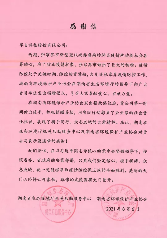 7月,新冠病毒德尔塔变异毒株出现,传播链波及南京、江苏、福建及湖南等多个省市,张家界成为疫情风险重灾区。湖湘儿女万众一心,一方有难,八方支援!在湖南省生态环境厅指导下,华体网页版登录入口_华体(中国)科技作为湖南省环境保护产业协会副会长单位,积极作为,向张家界捐赠一批防疫物资,用行动诠释企业价值,助力打赢疫情防控狙击战。