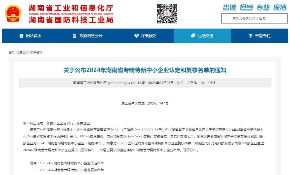 近日,湖南省工信厅公布了2024年湖南省专精特新中小企业认定和复核名单,华体网页版登录入口_华体(中国)信息、新天电数、华体网页版登录入口_华体(中国)卓创、格莱特新能源、湖南坎普尔等华体网页版登录入口_华体(中国)科技旗下5家子公司成功上榜。