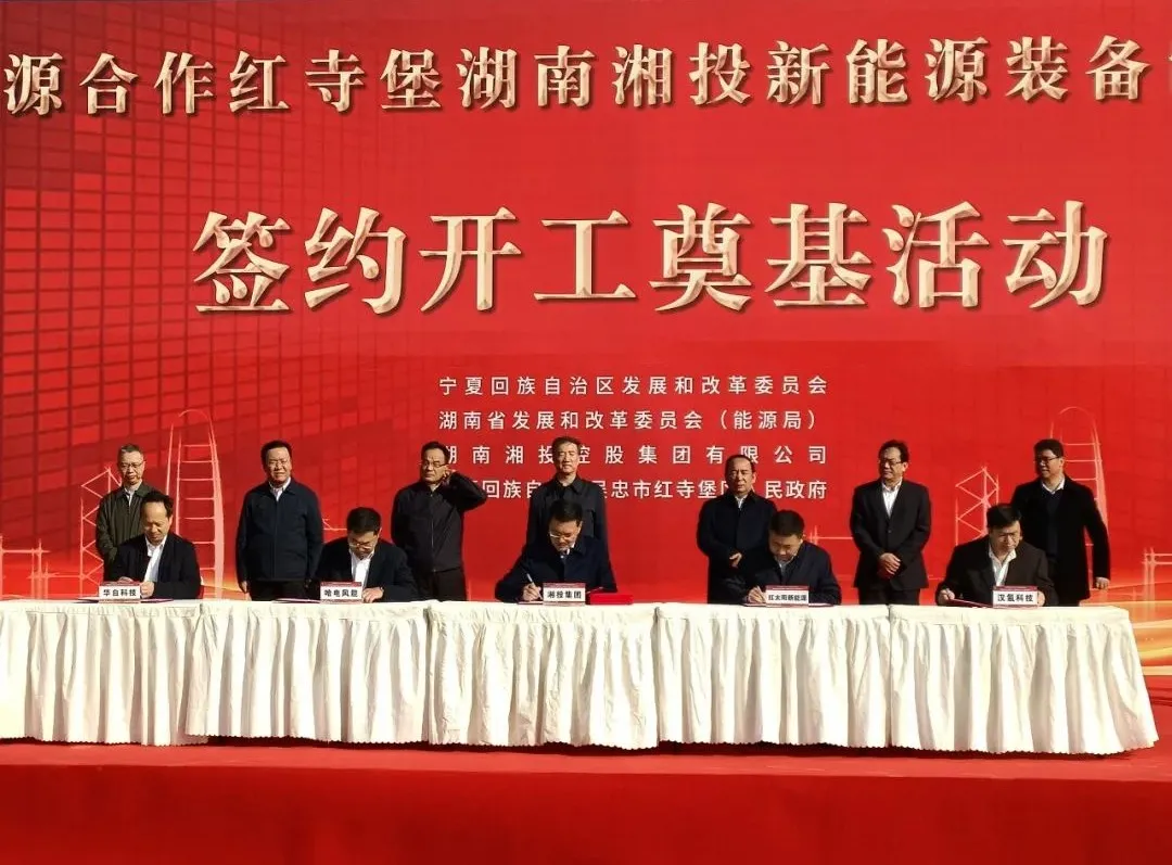 2021年10月15日,“宁湘能源合作红寺堡湖南湘投新能源装备制造产业园签约开工奠基活动”在宁夏吴忠市红寺堡区隆重举行,宁夏自治区常务副主席赵永清、区发改委主任李郁华、吴忠市长王学军、红寺堡区委书记丁建成,湖南省国资委主任丛培模、省发改委副主任刘崇斌、湘投集团董事长李勇、湘投集团总经理杨宏伟、华体网页版登录入口_华体(中国)科技董事长黄文宝等领导和嘉宾出席了本次活动。